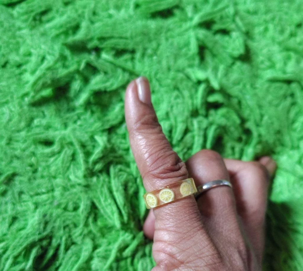 … My grandbaby is always leaving me little trinkets around my house. Lol This is the one I wear everyday on my pinky finger. She knows I love yellow and we love eating lemons together ๐คค